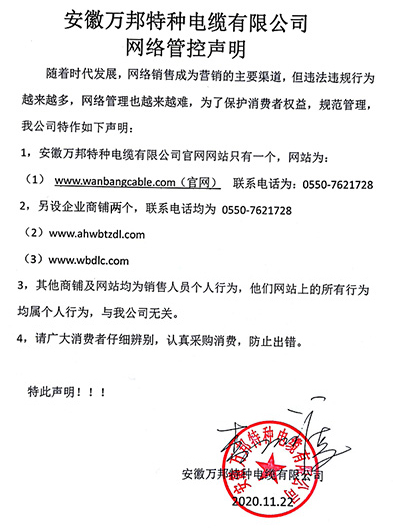 鄭重聲明:安徽萬邦特種電纜有限公司官方網站為:www_wanbangcable_com.xiezilouzushou.cn,除此之外無任何子網站或合作網站,其余均為假冒偽劣。電話:0550-7621728 13485756353 地 址:安徽省天長市滁州高新技術產業開發區經四路29號